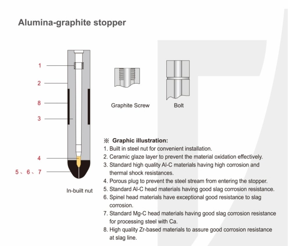 As the stopper rod comes into direct contact with molten steel, it must possess excellent erosion resistance. Its material can resist the chemical corrosion and mechanical scouring of molten steel and slag. This guarantees the service life of the stopper rod, reduces the replacement frequency caused by erosion, and enhances the efficiency and stability of continuous casting production.
